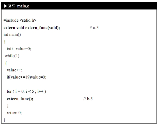 a-3와 같이 외부 함수임을 선언하고, b-3와 같이 콜 해 주면 우선 프로그램 상에서는 끝났어요. 다음으로 해 줘야 될 사항이 makefile에서 수정을 해 주셔야 해요.