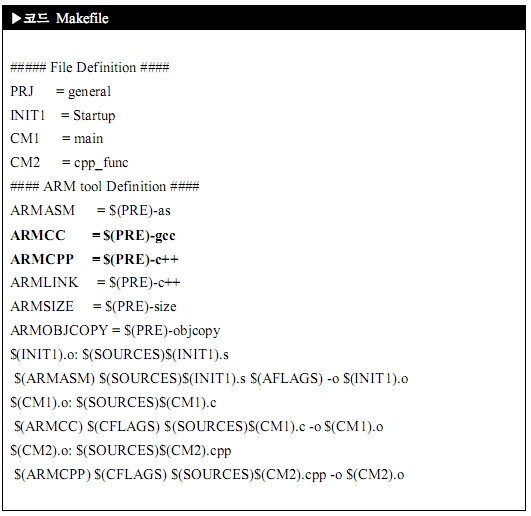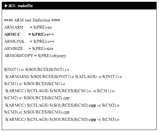 우선 main.c는 arm-elf-gcc를 사용하면 되지만 cpp_func.cpp는 arm-elf-c++을 사용해야 되죠.