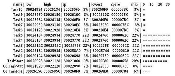 각 태스크의 스택 사용량에 대하 알아 보니 아래와 같이 나오는 군요.