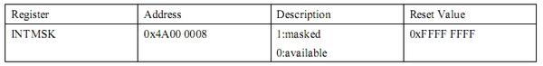 Main Interrupt에 대한 레지스터 설명을 보니 아래와 같이 나와 있군요. 디세이블을 하기 위해서는 모두 0xFFFF FFFF값으로 넣어 주면 되지요.