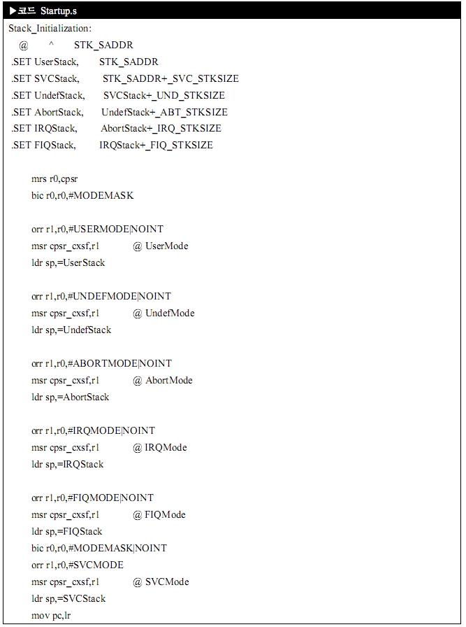 Startup.s 파일이 제일 먼저 실행되어야 하는 파일이죠. 이 파일은 개발자가 어떻게 프로그램 하느냐에 따라 조금씩 달라지지만 반드시 해야 되는 부분만 정리해 볼게요.