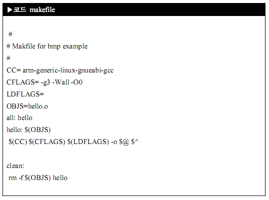 크로스 컴파일러가 설치가 되었으니 간단한 어플리케이션 하나를 만들어 실행을 해 보죠.