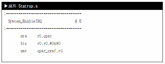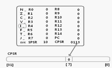 이제 IRQ 인터럽트를 Enable해 보죠. ARM core에서 IRQ 관련은 CPSR 레지스터에서 관리를 한답니다.