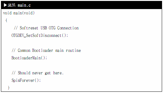 BootloaderMain 함수 안에 OEMPlatformInit 함수가 있답니다. 이 함수는 UART, Ethernet, USB와 같은 장치들을 초기화해 주고 Bootloader 메뉴 출력 및 플래시 메모리 설정 관련한 부분이 들어 있답니다.