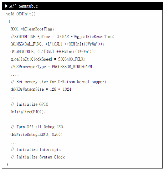 NK.EXE의 OEMInit 함수로 와서 개발 보드 관련 초기화를 한답니다.