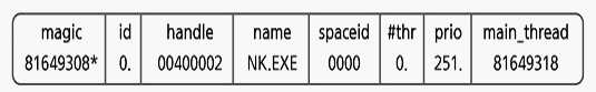 PROCInit 함수 실행이 끝나고 나면 NK.EXE 프로세스가 생성된답니다.