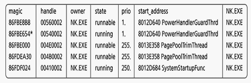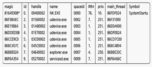 1. NK.EXE(OAL.EXE): 커널진입 시 가장 먼저 실행되는 프로세스랍니다. OEM layer에 해당 되며 커널이 Kernel.dll을 실행시킨 답니다.