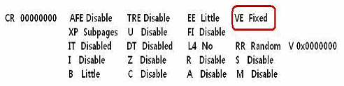 실제 System_DisableVIC 코드를 보면 어셈블리 명령어로 되어 있고, MRC와 MCR 명령어가 사용됩니다. 두 개의 명령어는 Co-processor 명령어 인데, S3C6410의 ARM1176 Core의 경우 VIC 사용여부는 Co-processor 레지스터인 CR(Control Register)에서 담당하고, 그 중에서 VE(Vector Enable)라는 필드를 제어하도록 되어 있답니다. VE값이 '0'이면, Fixed이고, '1'이면 VIC랍니다. 위의 코드가 실행되면, VE값은 Fixed라는 값을 가지게 된답니다.