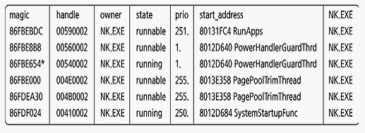 THRDInit 함수 실행이끝나고 나면 NK.EXE 쓰레드가 생성된답니다.