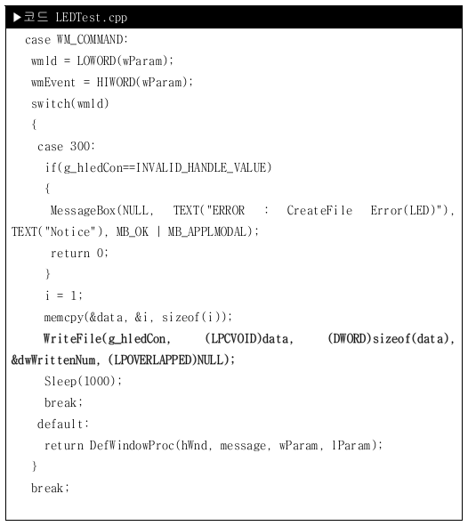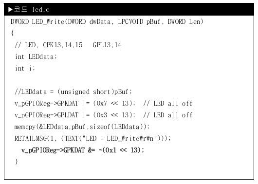 WriteFile 함수는 led.c 파일에서 정의한 LED_Write 함수로 연결이 된답니다.