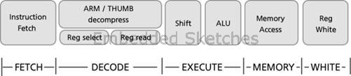 가장 기본이 되는 3단계부터 차근차근 보도록 하죠. ARM7 Core 3단계이며 Fetch – Decode - Execute 랍니다.