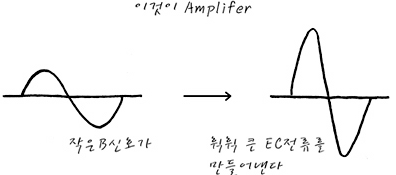 증폭기능 즉, Amplifier는 Trans Resistor의 의미 그대로인 활성영역에서 이용할 수 있겠습니다. 결국 증폭기능이란 아주 작은 전압 신호를 B에 흘려주면 CE간에 전류가 더 큰 폭으로 휙휙 움직이는원리를 이용한다고 보면 되겠습니다.
