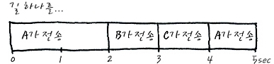 그러니까, bus로 통신할 필요가 있는 여러개의 회로들을 엮어 놓으면,clock에 따라 - 시간에 따라 - 서로 통신할 필요가 있는 것들끼리의 신호가 bus line에 떠 있는거죠. 번쩍 번쩍 나타났다 사라졌다.