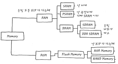 잡설은 그만 하고, 우선은 우리 Embedded System에서 가장 많이 애용되고 있는 구성을 알아보기 위해서 Memory의 종류에 대해서 다시 한번 고찰해 보시도록 하시는 건 어떨지요.