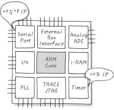 시중에 많이 떠다니는 IP module들은 USB, UART, DMA 등등이고, 만약에 IP designer로서 제대로 된 IP하나만 가지고 있으면, 그 IP를 쓰고자 하는 회사들이 있으면 돈을 주고 IP를 사다가 쓰기도 합니다. 돈이 되는 일입니다요.