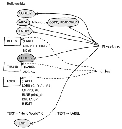 AREA Helloworld CODE, READONLY ; 이 코드 block의 이름과 속성, 이름은 HelloWorld