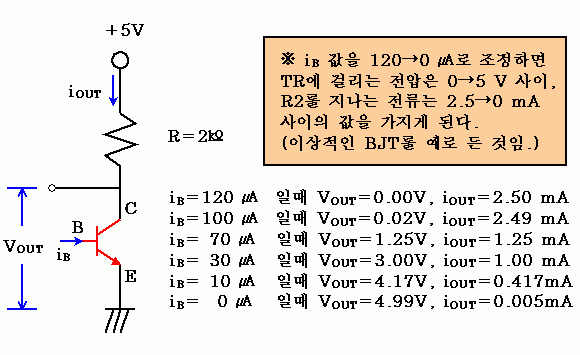 (여기에서는 우선 원리적으로만 살펴보는 것으로 NPN형 바이폴라 트랜지스터(BJT)만 예로 든다. 원리적으로는 FET도 마찬가지다.)