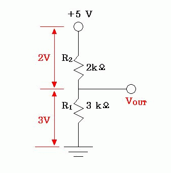 1. 복습 : 저항 두 개를 직렬로 연결한 회로 어디에서 이야기를 시작할까? 강좌 4에서 본 적 있는 (그 후로도 자주 등장하는) 간단한 전압분배 저항 회로 하나에서 시작해 보자. 아래 그림을 보고 간단한 질문에 답해보라.